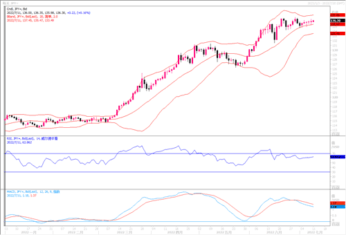 据日本共同网8日报道,日本央行7日发布消息呈,6月购买政府所发长期国债的数额达到创单月新高的16.2038万亿日元。此举旨在抑制利率上升。由于日本央行将利率一直控制在低于欧美的水平,导致资金容易流向利率较高的资产,使得日元的汇率不断承压。而且日本央行行长黑田东彦一方面表示日元急速贬值不利于经济,但另一方为了支撑尚未从新冠疫情中完全恢复的经济,宣称将继续坚持货币宽松。为此,市场也就不担忧日本央行在汇率上会有过激的干预行动。而在美元一篇强势的情势下,日元暂时还是看不到扭转颓势的机会。日线图上,美元兑日元继续在134.70之上震荡横盘,虽然前两周都曾出现吞没线出现,且技术指标产生背离迹象,都未能走出像样的大幅回撤行情。近期还是要留意上方137.00历史阶段的高位阻力情况,若突破上方有望进一步走高一线。下方则留意近期横盘的下方支撑134.70水位的力度,若彻底刺穿,或有望走出较大幅度的回撤行情。