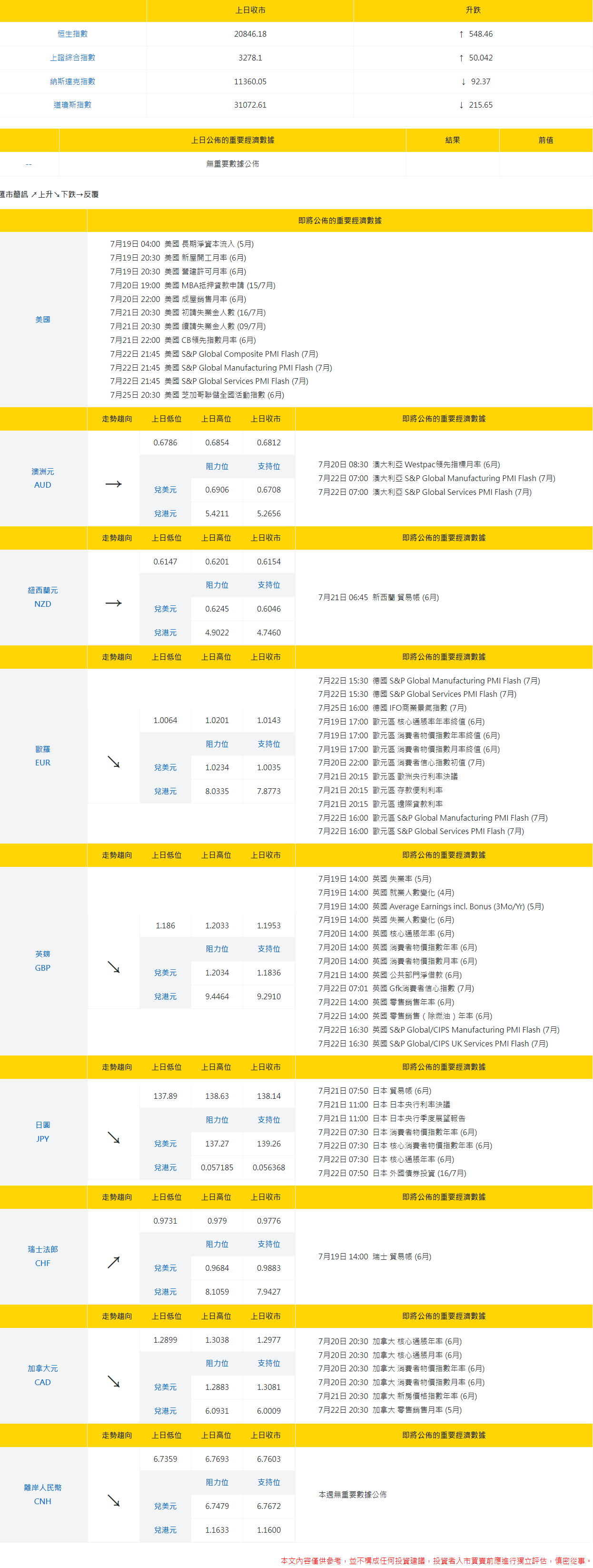 大丰银行:今日外汇走势分析和投资策略(2022年7月19日)