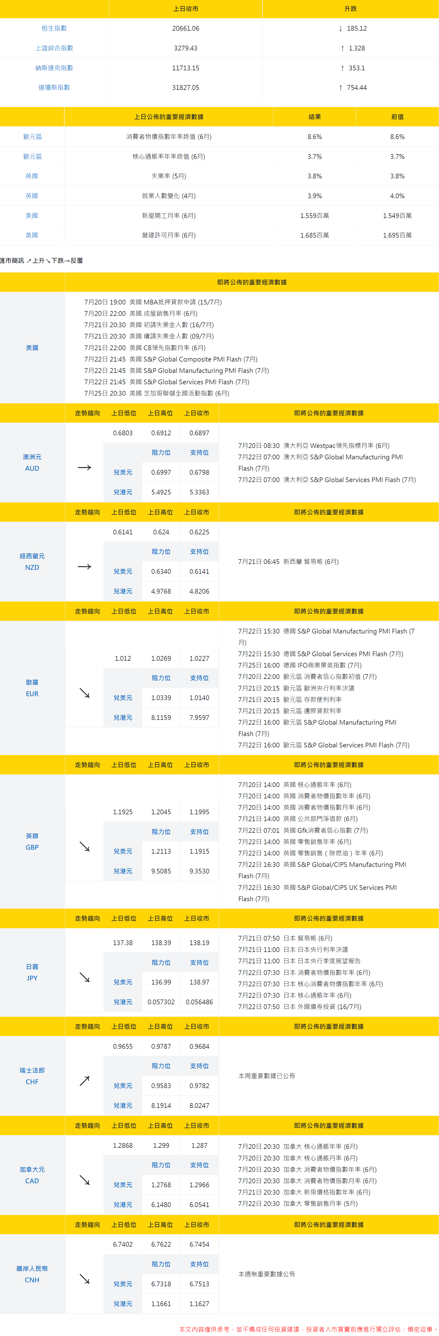 大丰银行:今日外汇走势分析和投资策略(2022年7月20日)