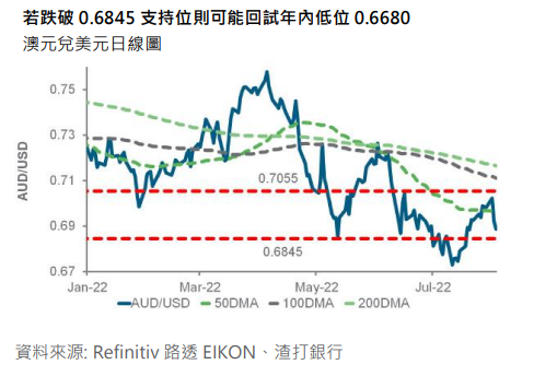 尽管澳洲央行加息 50 个基点,澳元兑美元仍下跌,央行未有为未来加息提供指引,因为央行预测经济将会放缓,并指政策前景将视乎多项因素。若汇价跌破 0.6845 的支持,可能代表近期上行动能已减退。