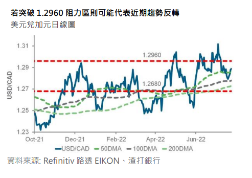 投资者正权衡美中日益紧张的关系,加元在美元走强下收跌,但由於在本周 OPEC+会议前油价持稳且投资者预期加拿大央行将跟上美联储的鹰派步伐,令加元跌势有所限制。阻力位在 1.2960,若突破则可能上望 1.3050.