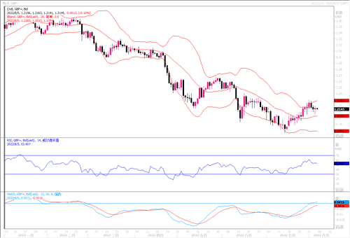 周四(8月4日)19:00,英国央行如期加息50个基点,创1995年以来最大单次加息幅度,但预测通胀峰值更高,经济四季度衰退。加息幅度虽有所加大,但带之而来是市场对于英国的经济发展前景是悲观的,因此英镑并未受加息消息而产生太大的刺激抬捧作用。盘中一度下坠90个点子,尾盘由于美元下跌,英镑收复一些失地,缩减了当日的跌幅收盘于1.2160附近。日图在MA10一线整理,随机指标倾向走低,若下破MA10才能打开进一步下行空间。4小时图小幅下行测试1.2100,但整体上行势头仍未破坏。小时图在MA200附近企稳,但上行动能缺乏。上方只有彻底刺穿1.22并企稳该水平之上,方有望继续向上攀高。