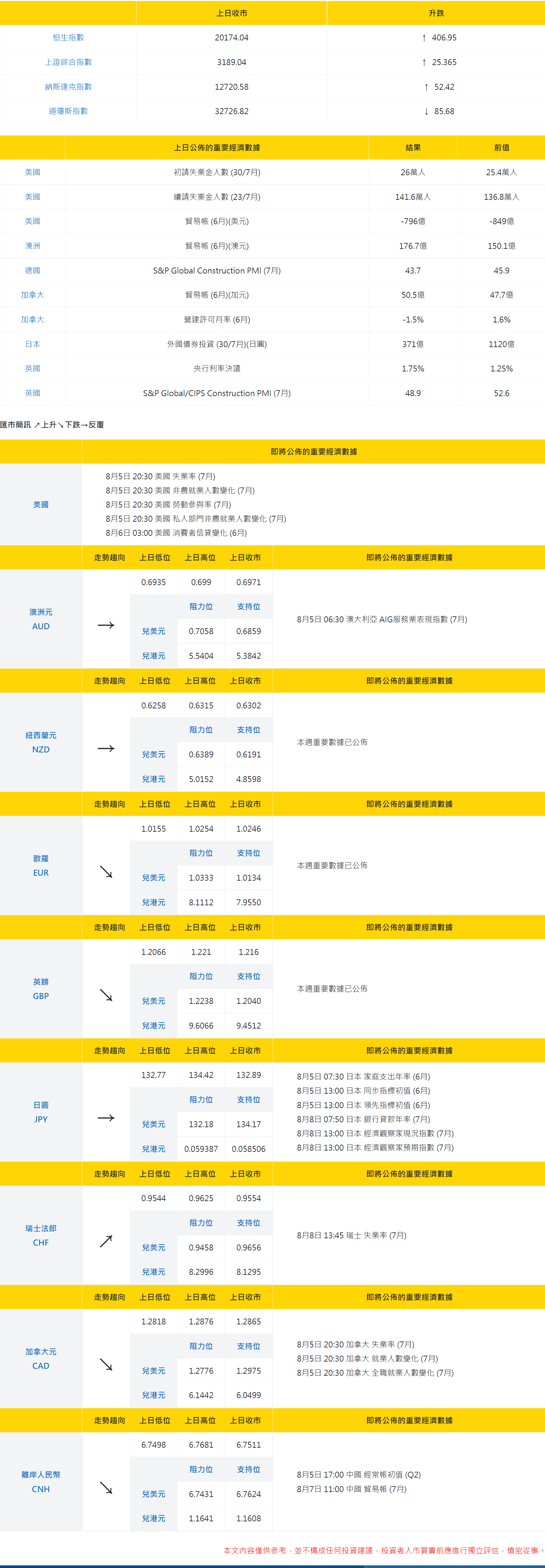 大丰银行:今日外汇走势分析和投资策略(2022年8月5日)
