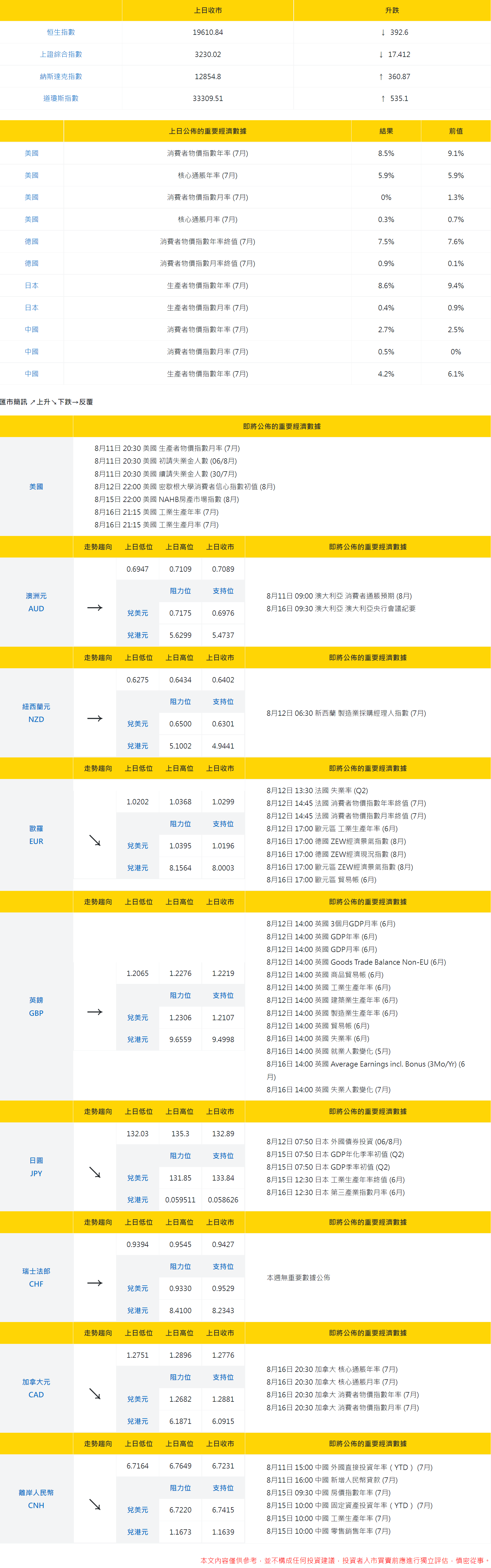 大丰银行:今日外汇走势分析和投资策略(2022年8月11日)