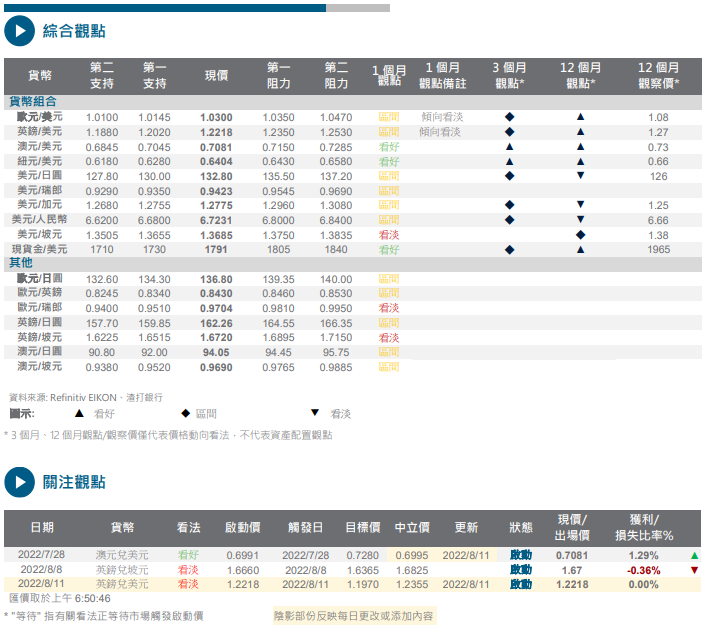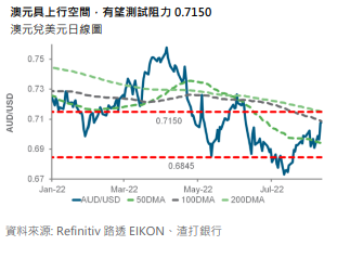 在风险情绪上升之下,波动性高的货币如澳元、纽元等表现突出。澳元突破先前的强劲阻力 0.7055,并可能进一步走高。我们正上调看好澳元兑元观点的中性价位以保护利润。