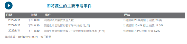 美国消费者物价指数低於预期,核心通胀持平、整体通胀按年变幅降至 8.5%.能源、机票和住宿价格下跌是通胀降温的主要驱动因素。美国 10 年期国债收益率变化不大,而2 年期国债债息则跌逾 5 个基点,因投资者预计美联储或会放慢加息步伐。上述通胀数据公布前,市场原料有约 75%机会加息 75 个基点,但数据公布後相关机率预期下降至50% 左右。我们将关注今晚公布的美国生产者物价数据,以寻求任何有关物价压力是否进一步舒缓的证据。