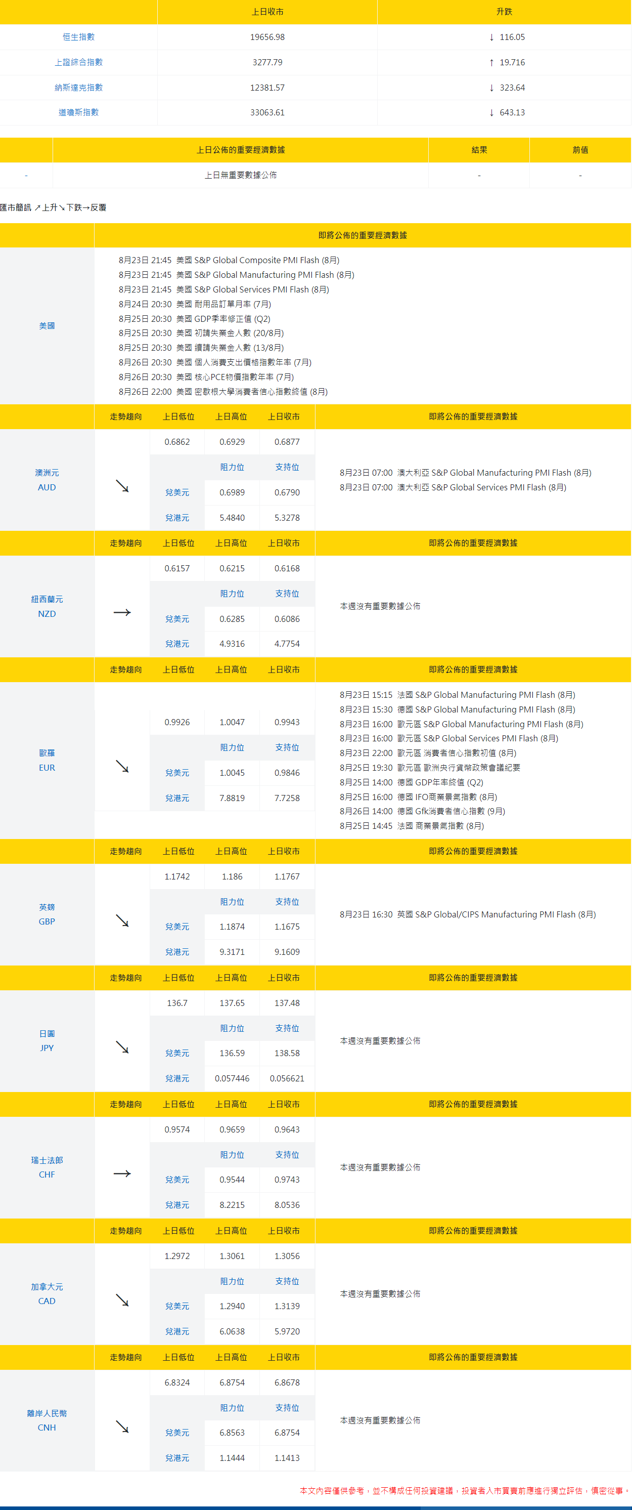 大丰银行:今日外汇走势分析和投资策略(2022年8月23日)