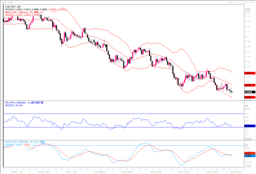 美元周二攀升。此前一份关于美国8月服务业的报告强化了美国没有陷入衰退的观点。美国供应管理协会(ISM)表示,上月非制造业活动指 数从7月的56.7小幅升至56.9,这是经历了三个月下降后连续第二个月上升。ISM上周的制造业调查显示 ,与其他主要经济体相比,美国制造业活动在8月稳步增长。制造业领域颇佳的数据似乎在证明美国经济没有衰退迹象,这在一定程度上推动美债收益率攀升,并给美元带来更多提振。在强势美元的压制下,欧元兑美元在周二汇市上虽有短暂反弹,但在纽约尾盘阶段还是回落至0.99水平附近。日线图上,欧元兑美元仍旧受压于短期均线下方,技术指标继续指向负向区域,显示欧元扭转颓势仍旧压力山大。即便本周四欧央行有出乎意料的惊人加息举动,恐对欧元的抬捧作用也是有限。日内留意0.99位置的支撑,若再度失陷,下方目标将会是20年前到过的低点区域0.98-0.97。
