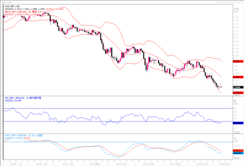 周二曾因媒体报导英国新任首相特拉斯计划如何应对英国日益严重的能源危机的新细节,英镑受到短暂提振,但随后因美元的继续向高点攀升,压制英镑回落至1.15水平之下。英镑的弱势固然与美元强势有关,但英国本身的经济疲软和高通胀使得英镑相较于其他发达经济体货币跌幅更大。今年第二季度,英国国内生产总值环比下滑0.1%,经济陷入衰退。同时英国通胀率是G7国家中最高,在7月份超过10%.高盛警告称,由于能源成本不断攀升,英国明年通胀率可能会超过22%,这是迄今为止最严峻的预测之一。而且英国的贸易赤字也在不断扩大。为此,英国国债收益率不断上升。英国政府正处于十字路口。新任首相特斯拉必须在保护经济免受能源危机影响以及大量支出将恶化国家财政状况之间寻求平衡,其难度必然是很大的。期货市场交易显示,外汇市场投资者还在押注英镑进一步下滑。根据商品期货交易委员会的数据,截至8月30日当周,英镑的净空头头寸仍高达29170份。目前技术图形上,无论中长线级别图还是日线图上,镑美均受压各期限均线下方,弱势形态明显,继续以防范英镑兑美元创纪录低点的风险为主。