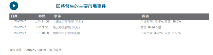 企业债发行量增且 ISM 服务业指数升,美债利率飙高美国 10 年期国债利率升近 16 个基点至 3.35%,30 年期国债利率攀升至 3.50%,创 2014 年 7 月以来新高。周一假期和利率市场波动都可能造如此起伏的走势。好消息是短债利率升幅低於长债,孳息曲线倒挂程度略为缓和。展望後市,预期加拿大央行将加息 75 个基点、美联储将发表的经济褐皮书,可能会提供一些关於经济动能的指引。