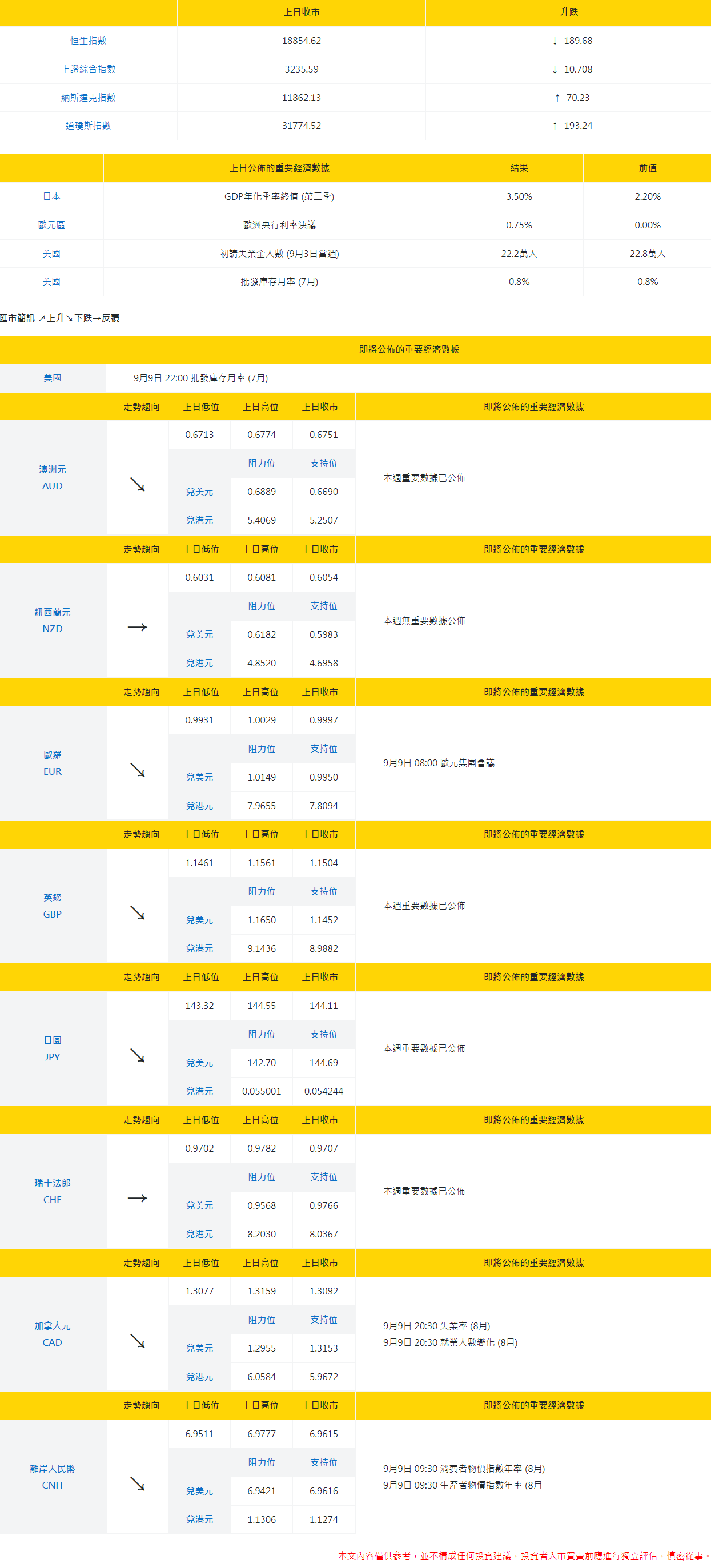 大丰银行:今日外汇走势分析和投资策略(2022年9月9日)