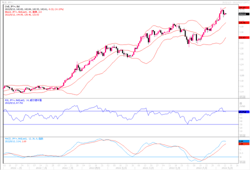 美元兑一篮子货币在近期强劲上涨后周一跌至两周多来的最低水平108附近,而美元兑日元自上周五出现高位获利回吐后,周一反而有所企稳。纽约联储的月度消费者预期调查显示,由于汽油价格从6月份的历史高点继续急剧下降 ,8月份美国消费者的通胀预期进一步下滑,这一进展可能会给美联储官员带来一些安慰,从而也就引起市场的猜测暨美国9月份的加息幅度会否减低。今晚将有美国8月通胀数据CPI公布,如果数据疲软,或会令美元兑日元进一步自高点回落。日线级别图上,美日在145水平处暂时构成重力压制水平,技术指标严重超买,但汇价目前还是处于短期均线上方;4小时图上,美日徘徊于142.00水平附近,RSI在均衡线附近,指向不明朗,若是跌穿142,下方的强支撑在140.00附近。