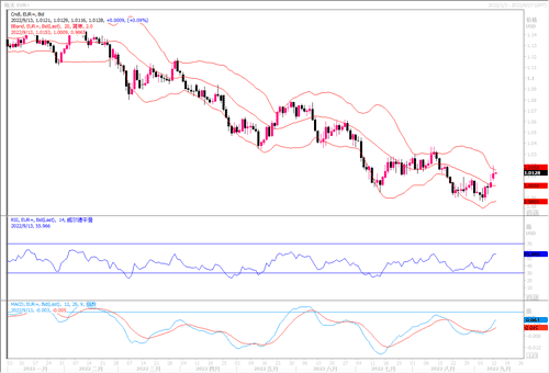 欧元兑美元周一(9月12日)跳升至逾三周高点1.0198,收盘于1.0123,全日升幅达0.77%。这主要是周末(欧洲央行官员)的评论非常鹰派,德国央行总裁纳格尔周末对德国电台表示,如果消费者物价的情况没有改变,“必须采取进一步的明确措施”。此外,消息人士告诉路透,多位欧洲央行决策高层官员认为,欧洲央行必须将指标利率提高到 2%或更高、以遏制高通胀率的风险正在上升。同时,周二美国将公布8月份的CPI通胀数据,调查显示预计8月美国物价涨幅将会放缓,为此当前市场上开始出现美元多头平仓。随着欧央行加息的讨论继续,欧元存在一定的空头回补,但是否意味着欧元扭转颓势开启一轮反弹攻势,还有待观察。技术图形上,在日线级别图上,欧元兑美元穿破布林带中轨,技术指标较为强势上扬,欧元显示出一定强度的反弹动能。上方若穿越1.02,进一步的阻力在1.03,然后时1.05。下方支撑依次在1.01和1.0035。