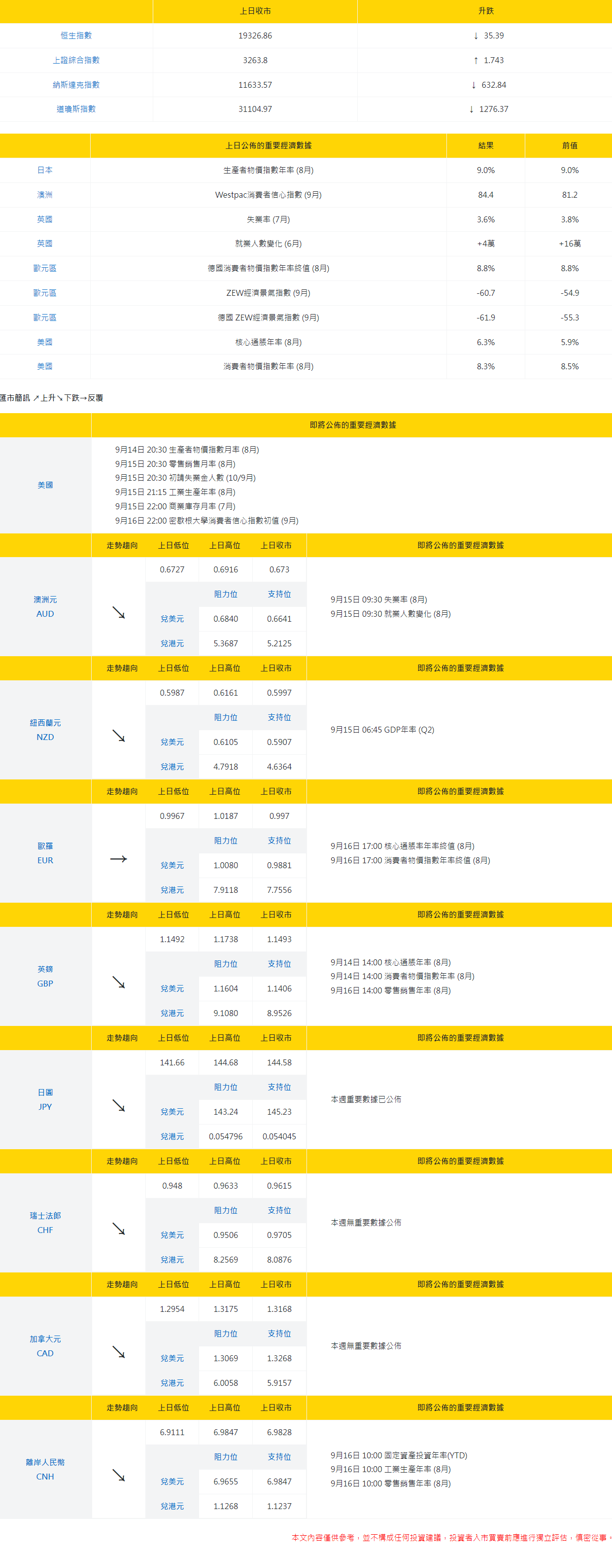 大丰银行:今日外汇走势分析和投资策略(2022年9月14日)