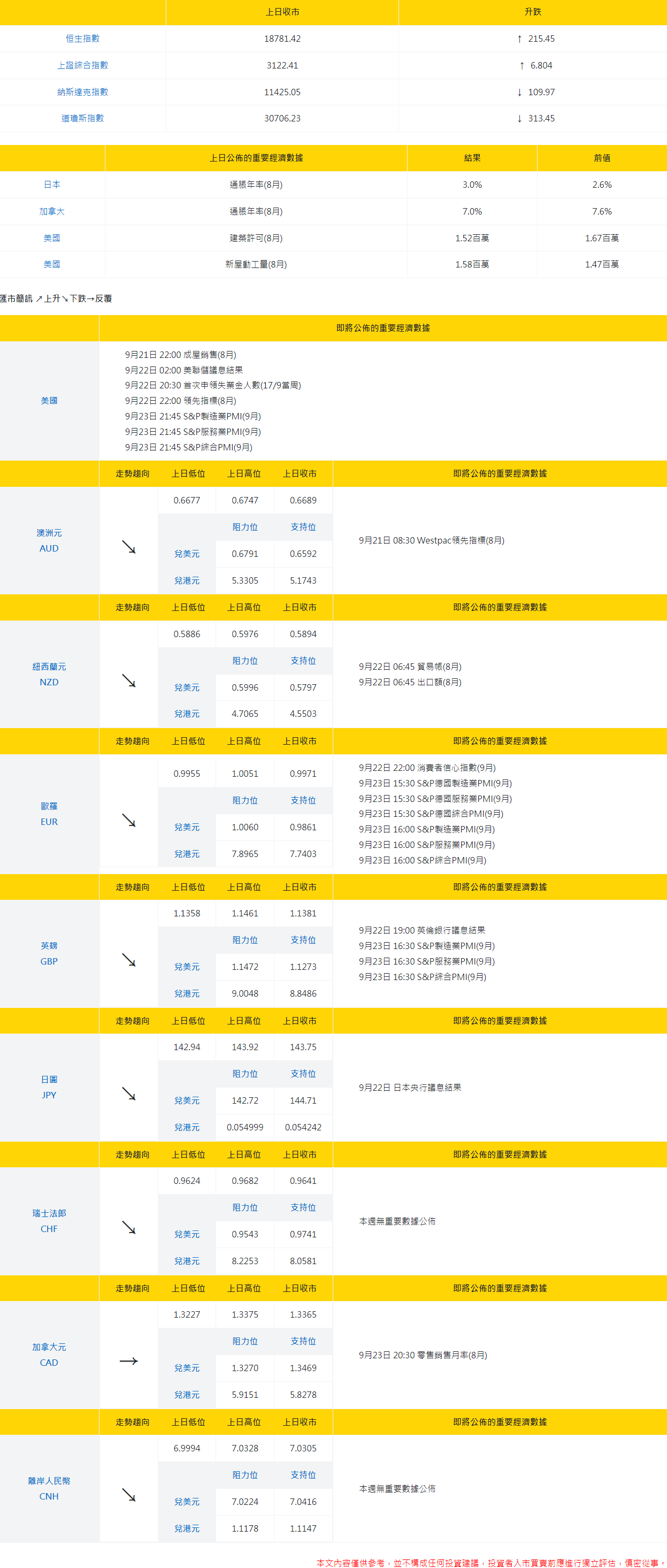大丰银行:今日外汇走势分析和投资策略(2022年9月21日)