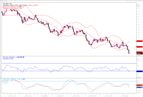此前调查显示整个欧元区和英国的商业活动下滑速度加快,经济可能进入衰退期。同样对英镑构成压力的是,英国新任财政大臣夸滕宣布减税以及家庭和企业支持措施,政府债务办公室制定了本财政年度增发720亿英镑(797.4亿美元)以资助刺激措施的计划。英镑兑美元上周五(9月23日)触及1.0840美元的37年新低,创下两年来的最大周跌幅。英镑兑美元是当天最大跌幅最大的货币,下跌3.4%,报1.0874美元,这也是两年来最大的单日百分比跌幅。英国央行上周四将利率提高了50个基点,试图解决通胀问题,但与最近几个月的前几次加息一样,此举未能支持英镑,因为它被对经济的担忧所掩盖。除美元指数在美联储如期加息75点并释放鹰派信号而大幅攀升并刷新20年高位是施压英镑下挫的主要原因外,对英国央行大幅加息的预期降温和对英国经济今年晚些时候将陷入衰退的担忧也对汇价构成了沉重的打压。目前在看空英镑情绪浓厚的氛围下,日线图上显示英镑下行态势加快,技术指标进一步向超卖区域延展。继续看英镑有进一步创历史低位趋向。