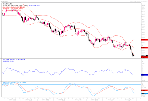周二(9月27日)美元走势温和,欧元仍然接近前一天创下的20年低点。自上周以来,欧元一路下行,一度失守0.9600关口,现汇价仍处在近阶段的低点0.9600附近。除美元指数在多重利好因素的支撑下突破114.00关口并刷新20年高位是施压欧元下挫的主要原因外,欧元区表现疲软的经济数据也对汇价构成了一定的打压。不过,0.9600关口附近所形成的技术面买盘暂时限制了汇价的下跌空间。短线4小时图上的各类技术指标出现钝化,欧元的超卖味道较浓,日内还是要密切留意近期触碰过的低点0.9553的支撑,若撑持的住,或存在超跌反弹整理的机会。上方初步阻力0.9649,进而是0.9700。