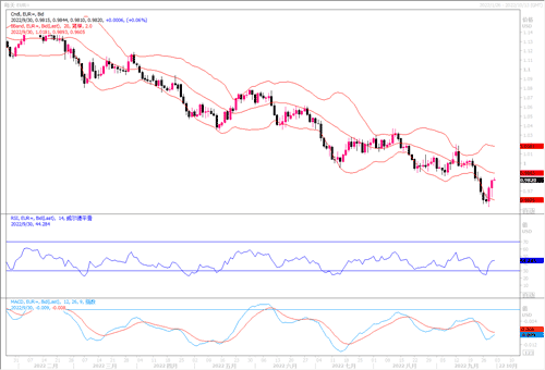 近几个交易日里,由于美元自历史高位有所回落,欧元周四继续录得反弹性上升0.7%,兑美元回到0.98楼上。数据显示,欧元区9月份经济景气度大幅下降,且降幅超过预期,因为企业和消费者信心下降,他们对未来几个月的通胀趋势也持悲观态度。然而,最大的焦点是德国的通胀率,本月跃升至10.9%,远远超出预期的10%。这表明周五将公布的更广泛的欧元区19国的数字也可能超过预测的9.6%,这加强了在下一次欧洲央行政策会议上再加息75个基点的理由。尽管如此,一些分析人士认为,欧洲央行的潜在行动很可能只是对欧元的短期提振。由于欧元区经济衰退预期高企,加息幅度也难以超过美国,因此欧央行即便随后又加息行为,恐怕对于欧元的刺激作用也是微乎其微。日图在0.9550一线企稳收录早晨之星,随机指标倾向自超卖区域回升,但上方0.99处压力仍沉重。4小时图短暂下探前期下影线低点0.9552后企稳,并以大阳线拉升,RSI、MACD等技术指标上扬,显示一定的反弹动能,三上方0.99压力线若不能突破,则短线回调须关注0.9670支持。该支撑位若跌破,将宣告此轮反弹失败。