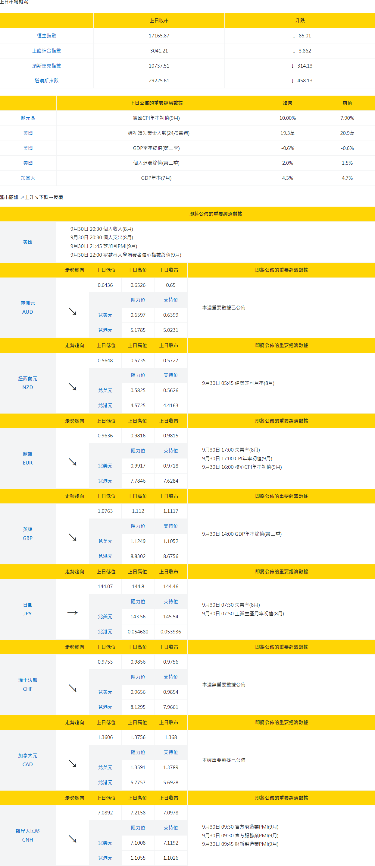 大丰银行:今日外汇走势分析和投资策略(2022年9月30日)
