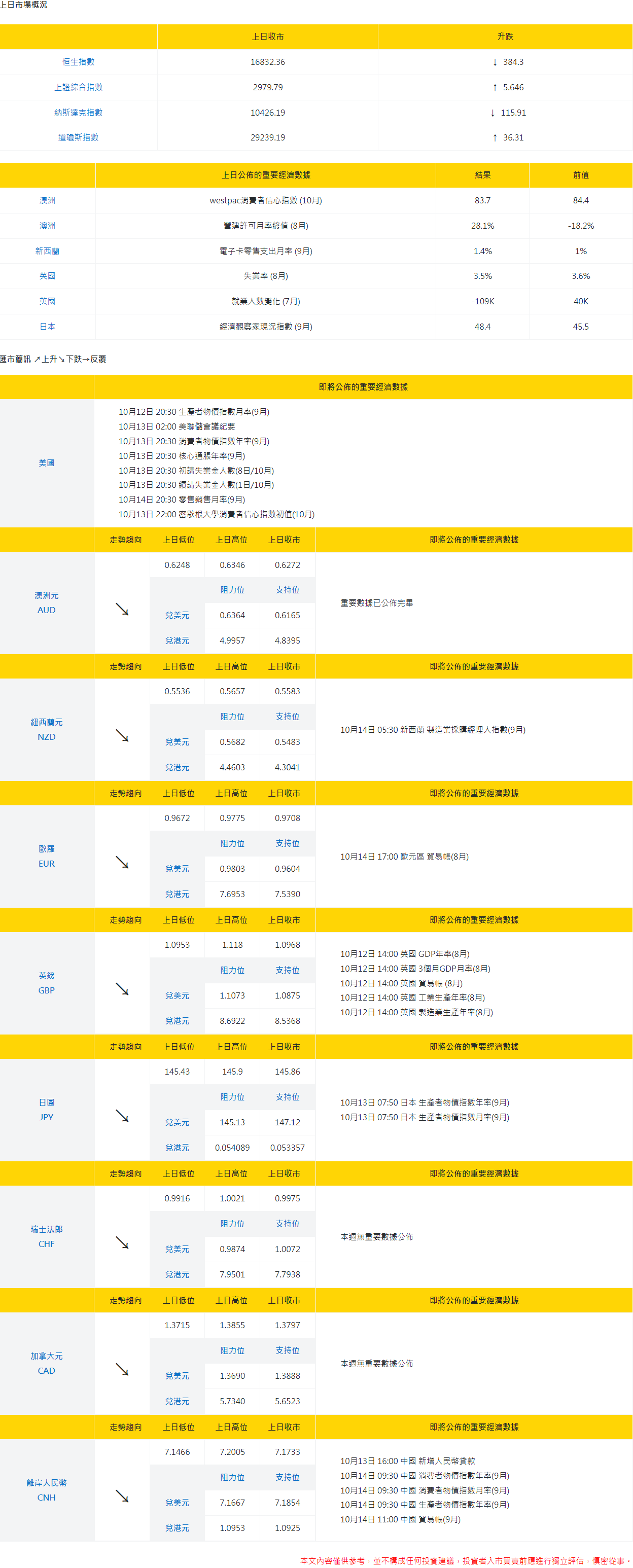 大丰银行:今日外汇走势分析和投资策略(2022年10月12日)