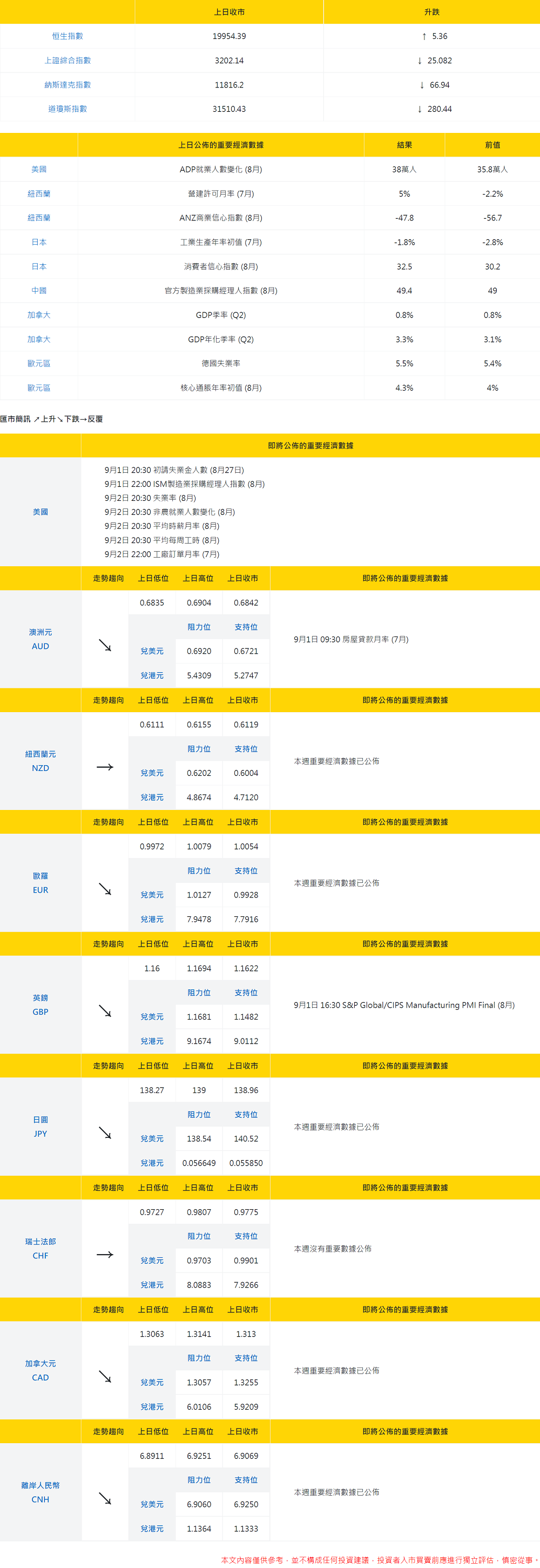 大丰银行:今日外汇走势分析和投资策略(2022年9月1日) 上日市場概況
