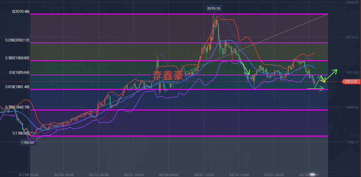 简单理解,午夜行情给到1905-1900做空,损1890,目标看1916-1925位置,上破1925继续看反弹到1940附近。