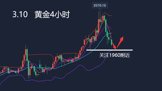 周四(3月10日)亚市盘初,现货黄金震荡下跌,延续隔夜跌势,目前回落至1970美元附近,在乌克兰高层智囊称对讨论俄罗斯提出的中立要求持开放态度后,大宗商品普遍下跌,黄金也跟随跌势,现货黄金周三大跌逾3%。技术面,日线级别K线出现了“乌云盖顶”的顶部信号,投资者需要予以警惕。整体来看,风险偏好的关键将取决于