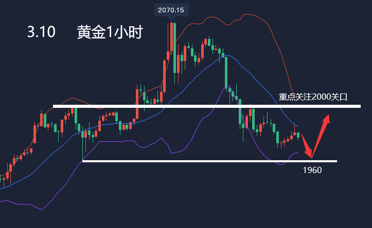 消息面解析: 周五(3月11日)亚洲时段,现货黄金震荡微跌,目前交投于1994美元附近,此前乌克兰与俄罗斯外长的会谈未能就停战问题取得进展,逢低买盘继续给金价提供支撑,而且美国2月通胀率创40年新高,吸引投资者买入黄金对冲通胀。不过,下周将迎来美联储利率决议,市场普遍预期将加息25个基点,而且未来将持