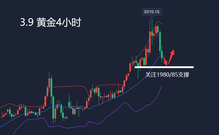 周三(3月9日),现货黄金转跌,此前三个交易日连续上涨势头有望终结。在纪录高位下方附近,金价上行阻力明显增大。美元指数也进一步回落。但乌克兰局势尚无缓解迹象,西方对俄罗斯开打石油战,料进一步推升本已火热的通胀,黄金避险地位很难被削弱,美元下行空间也有限。 黄金白盘先震荡回弹,上方测压至2060一线