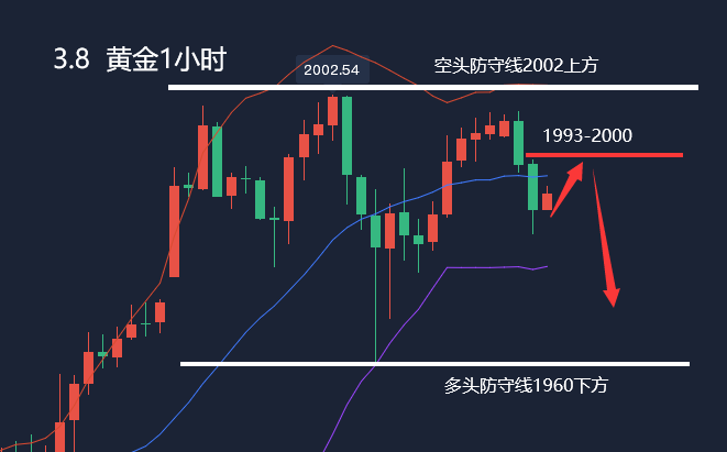 【黄金走势分析】 市场对俄乌局势的担忧情绪影响,昨日黄金高开高走,上方高点刺破2000整数关口,然晚间因俄乌展开谈判,市场避险情绪短时降温,导致黄金大幅回吐,下方跌破跳空缺口1970,低点跌至1960附近,但后半夜行情又再度回弹,且再测2000整数位,日线最终还是再收得一大阳。昨天2000-1960内震荡,速度也很