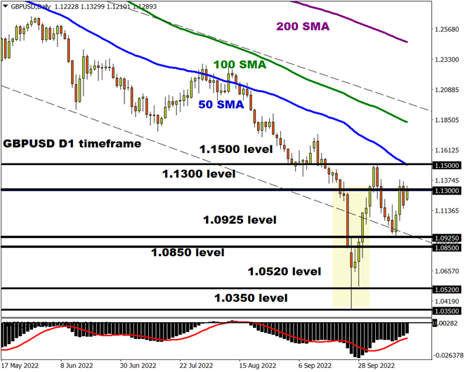 有意思的是,英国市场本周开局乐观,原因是财政部在当地时间周一早上6点意外发布了一份声明。声明称将提前公布中期财政计划,以缓和紧张情绪,减少不确定性、提高政策透明度。市场由此推测特拉斯的减税措施可能进一步逆转,英镑小幅上涨至1.1300附近。
