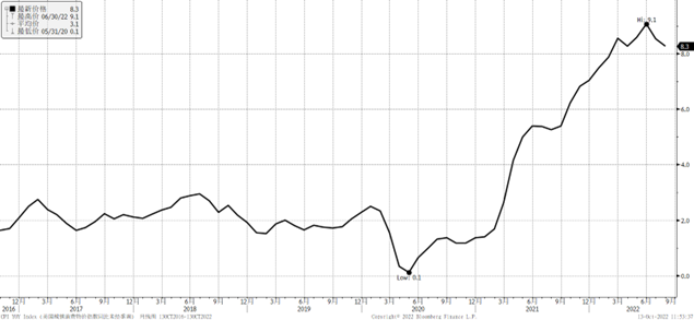 通胀数据再次全城触目 近期经济日历上最引人瞩目的莫过于本周四公布的美国9月份消费者价格指数(CI)。这个数据的重要性不言而喻,它将影响美联储货币政策调整节奏,也是美债和美元走向的关键驱动因素。上周五揭晓的非农就业报告强于预期,美联储11月再次加息75个基点几乎板上钉钉。如果通胀继续居高不下将强化人们对美联