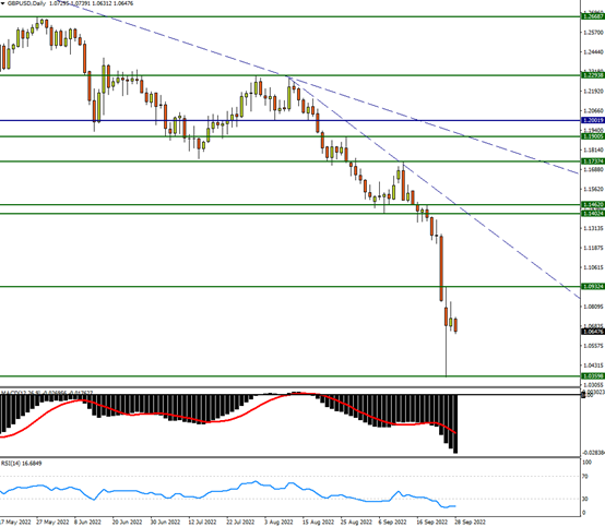 英镑周一亚盘跌至历史新低1.03水平 市场对英国经济政策和经济前景忧虑扩大,英镑在周一亚盘时段再大跌5%至1.0374的历史新低点,跌破了1985年铁娘子时代创下的历史低点。 截止周三,英镑已回升至1.06-1.07水平。 然而,中短期英镑的前景不容乐观,跌破兑美元平价的可能性正在加大。 减税举债补贴新政使市场恐慌 实际