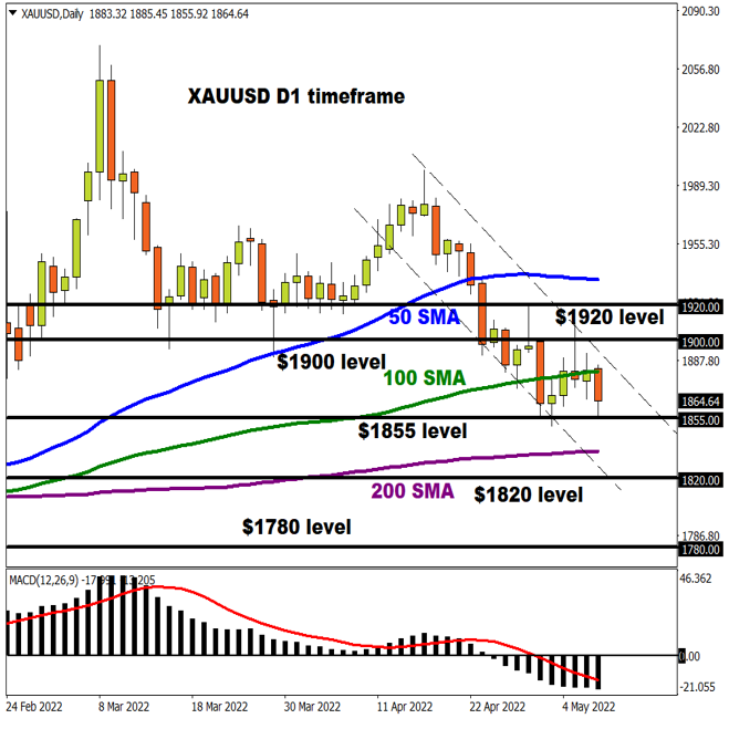 最近几周,黄金市场连续下跌。 金价4月中旬上冲2000美元未果后急剧回撤,多头力竭,空头推动金价跌至2022年2月以来新低水平! 从大环境看,上周三美联储议息会议将基准利率上调50个基点,为2000年以来首度一次加息50个基点;之后出炉的美国非农数据整体向好,继续支持美联储加速收紧货币政策。这些都对黄金构成利空。