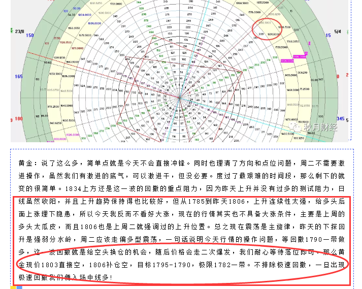 周三:昨日周二整体波动也不大,我们周二提出1803直接空,1806加仓空,周二未能走出预期回撤。最终持仓过夜,目前价格回落至1800下方,空单开始出现利润。昨晚上升至1809走回落,其实在昨日先看回踩然后在接多是没毛病的。因为从时间结构上来说,1806就是这一轮涨幅的高点,星象图上给大家标注的很清楚。不过昨日的涨幅很小,现在周三亚盘随着隔夜回落,想继续在1803和1806做空的期待大概率落空,对我们来说行情还是很给力,今天应该不会反弹给做空机会,但我们也不会这里也不会在选择激进空,手中空单还在。回撤结束后继续看上升,本身就是看回踩确认低点,只能说明行情还是在我们预期里面,空获利后也是要找位置做多,这一次的多头必然要看破1809的。