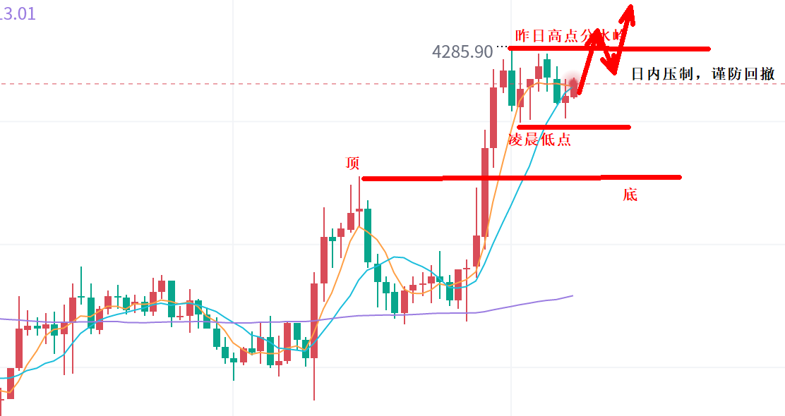 黄金方面,很遗憾,昨日早间下跌后午后反弹,没有走延续回落,日线呈现三十字K。