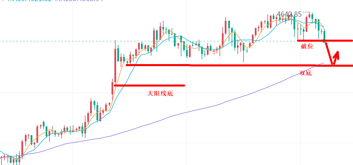 早间金银油都出现快速下跌,而价格三次测试4600一线,基本要破。