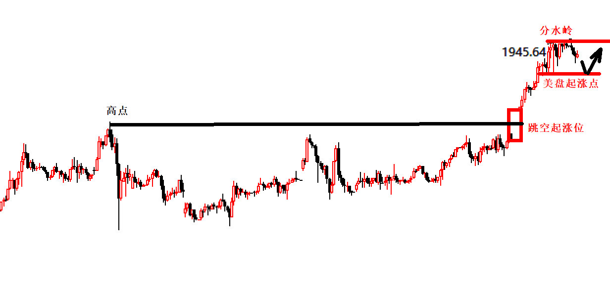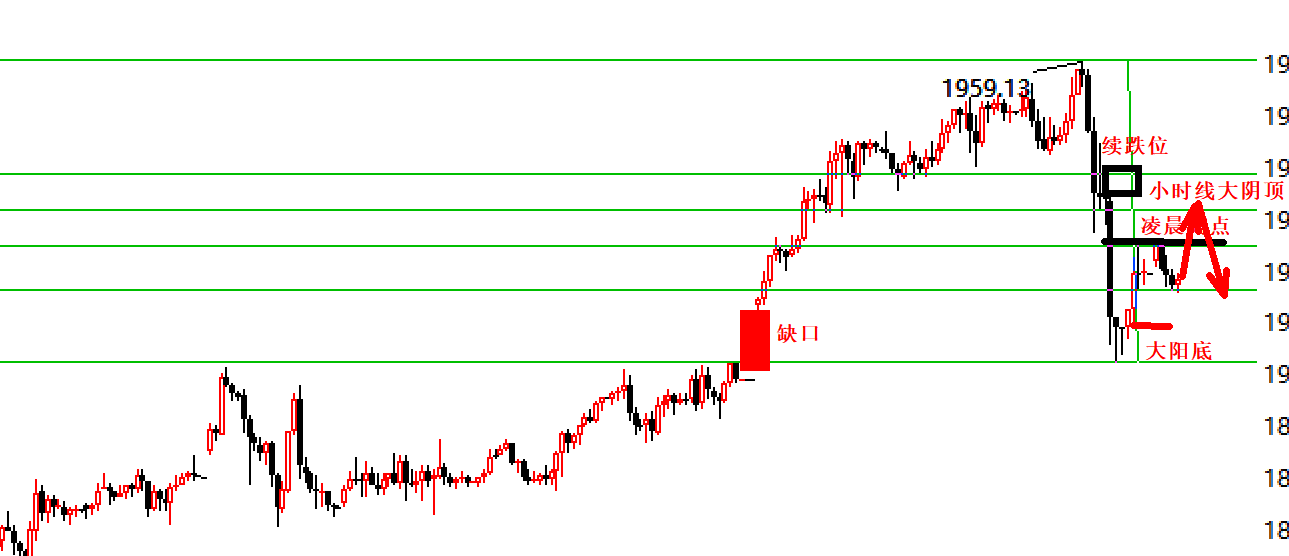 6点30,提前对晚间行情做个安排: 1,早间我们定义黄金今日走探底回升,价格应该在欧盘回落,而分水岭1955一线。 走势和昨日一样,早间下跌,午后缓慢上升,到欧盘破高。空单失败。 但这有两个点需要注意: 1,早间定义探底回升,趋势定义错了,分水岭1955和时间点欧盘,是判读错误的分界线。 2,事不过