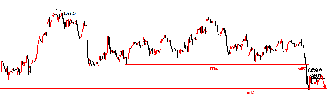 黄金方面,昨日早间刚强调过突破的时间点,昨日就迎来了40美金的下跌,日线大阴回撤,呈现日内和美盘连跌格局,而凌晨小幅反弹。 其实在这种形态中,技术点就简单许多: 1,昨日欧盘连跌,且美盘前破前期低点,这就意味着6-8点反弹要空一次,美盘继续看下跌。 2,但是6-8点继续下跌破低,那么下跌形成,就不能