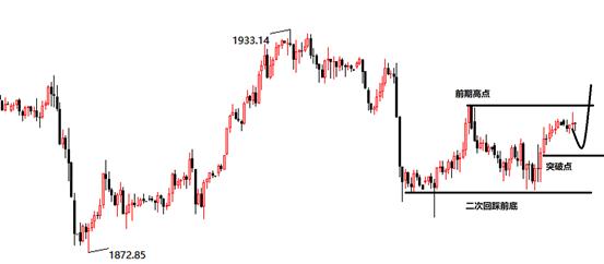 黄金方面,昨日如期走了区间,价格没有进一步破低,这就是典型的下跌之后,反弹力度过大,破低的动能减小了。 但由于跌幅过大,所以二次下跌,没什么悬念,也成了日内不断做空的靶标。 今日首先,继续来学习下技术点: 1,昨日美盘二次测试1915一线,弱势中的双顶或者三顶,依然是关键开空位。 2,凌晨12点