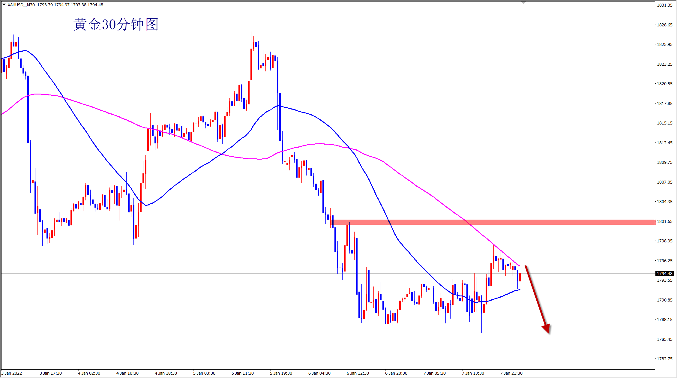 黄金短线震荡,属于大跌后的修正,而且反弹力度不足,没有突破早盘提示的1800压力位置,反弹无力,最终的结果只有一个,继续下跌,并且震荡后必定是新的下跌开始!