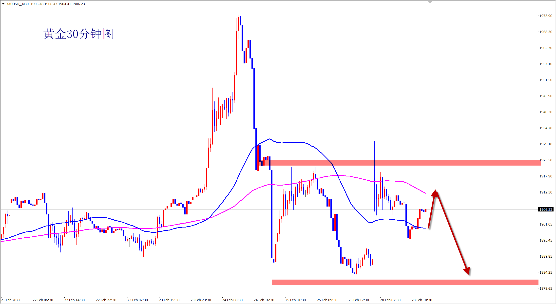 黄金1910空,止损1918,目标1890-1880;