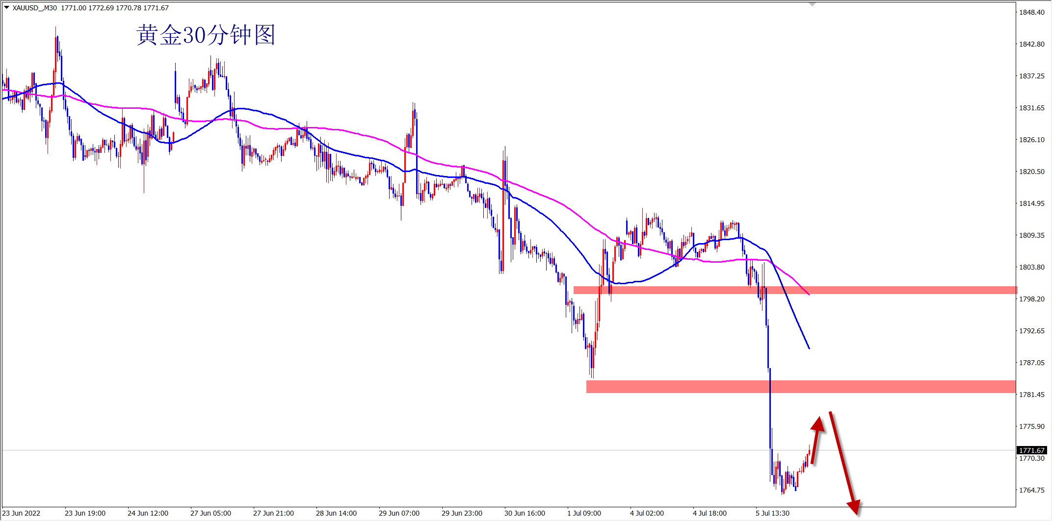当前的黄金毫无疑问的是下跌趋势,而且昨日再次破位新低并且大阴杀跌!下跌趋势继续,操作上就要顺势而为!早盘反弹依托1780的压力继续干空!当前黄金大跌,暂时不要轻易追空,而是等反弹后再空!