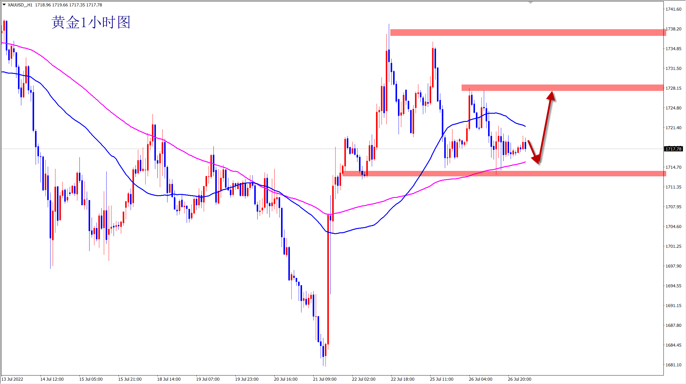 黄金当前一直进行横盘区间内整理,昨日我们1722空如期下跌获利,但是下方一直没有破位,今日我们依托1715的支撑干多!