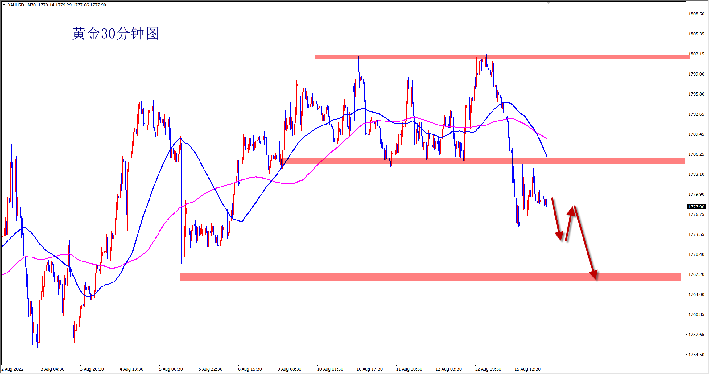 黄金如果不破位,那么还是震荡行情,但是昨日直接破位,没有给到犹豫的机会,所以昨日空单非常给力,非常完美!并且我们也及时的调整思路,开始看跌!昨日反弹的压力1785有效,而且反弹不能再次重回盘整区间内,行情已经转跌!