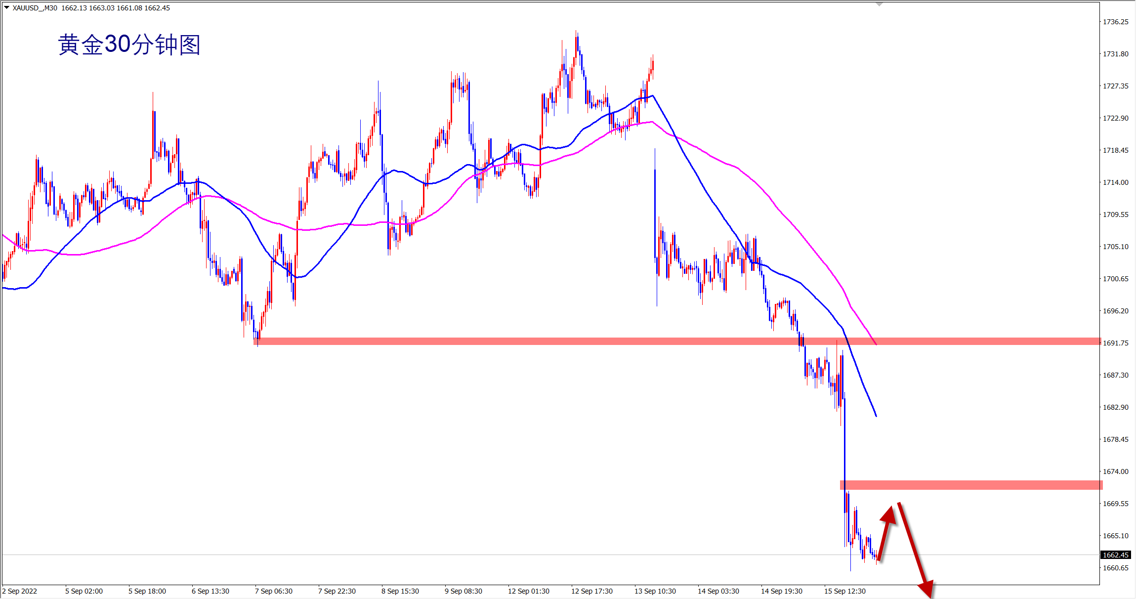 黄金当前的走势已经无需多说,破位下跌,新的波段下跌开始了!接下来的操作只有一个方向,空!顺势轻飘飘,逆势乱糟糟!趋势为王!顺势而为!