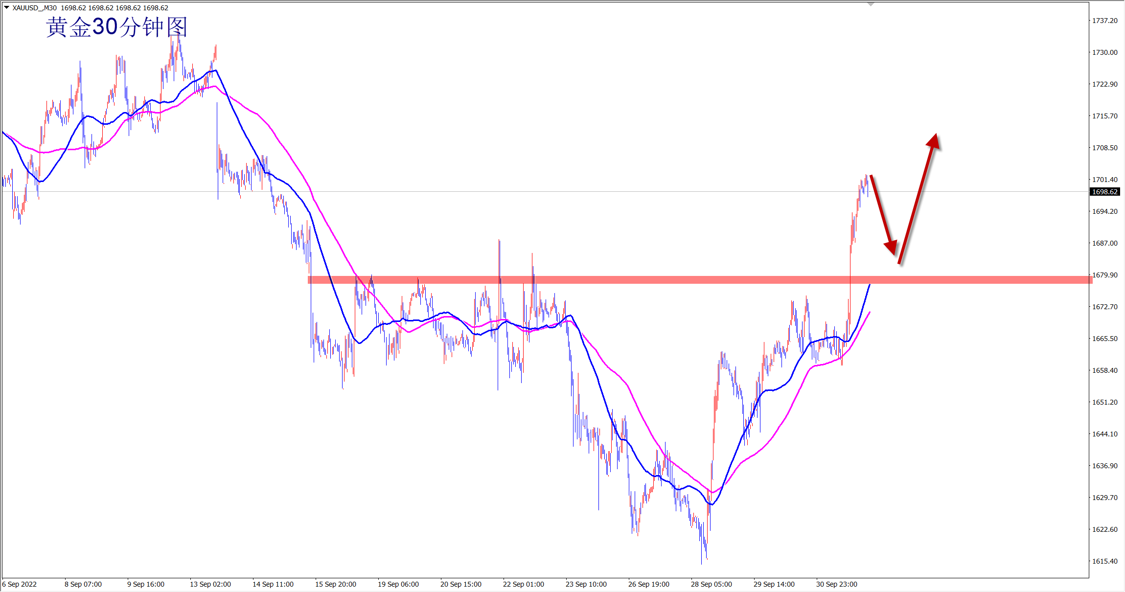 黄金经过长时间的大跌后开启反弹,而且反弹非常强势,直线式拉升!势不变则守,势变则随!当前黄金开启上涨,操作上就要及时的调整思路继续干多!早盘依托1690的支撑位置继续回落干多!
