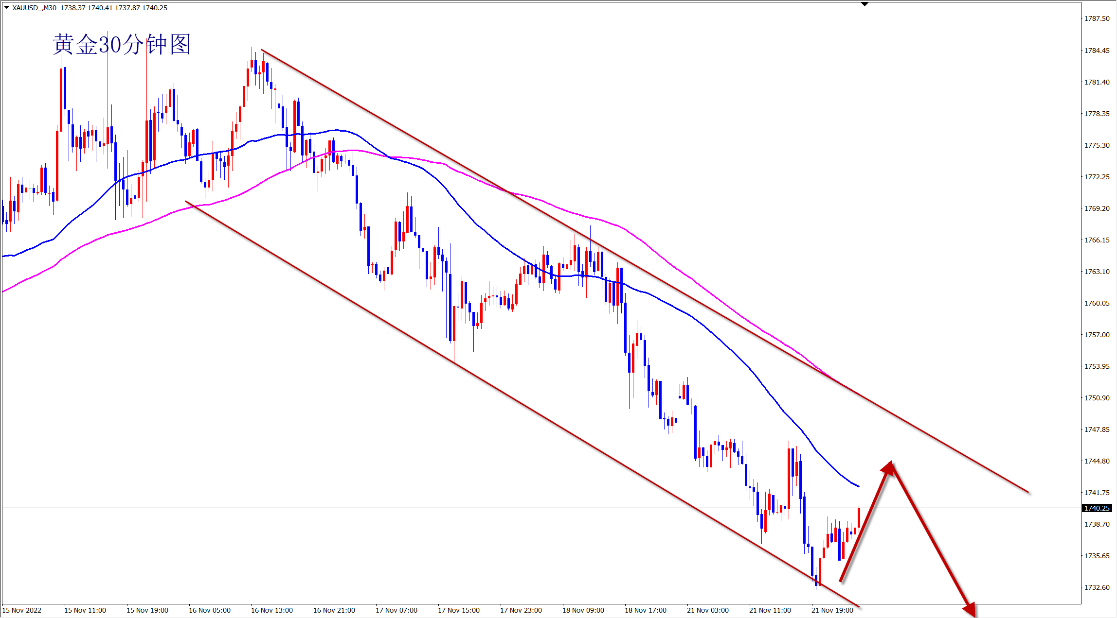 当前的黄金明显的下跌趋势,而且是通道内的震荡下跌!每次反弹遇阻后都会延续下行!顺势轻飘飘,逆势乱糟糟!早盘依托压力位置还是要顺势继续干空,下方的支撑则是前期上涨的盘整1700区域!