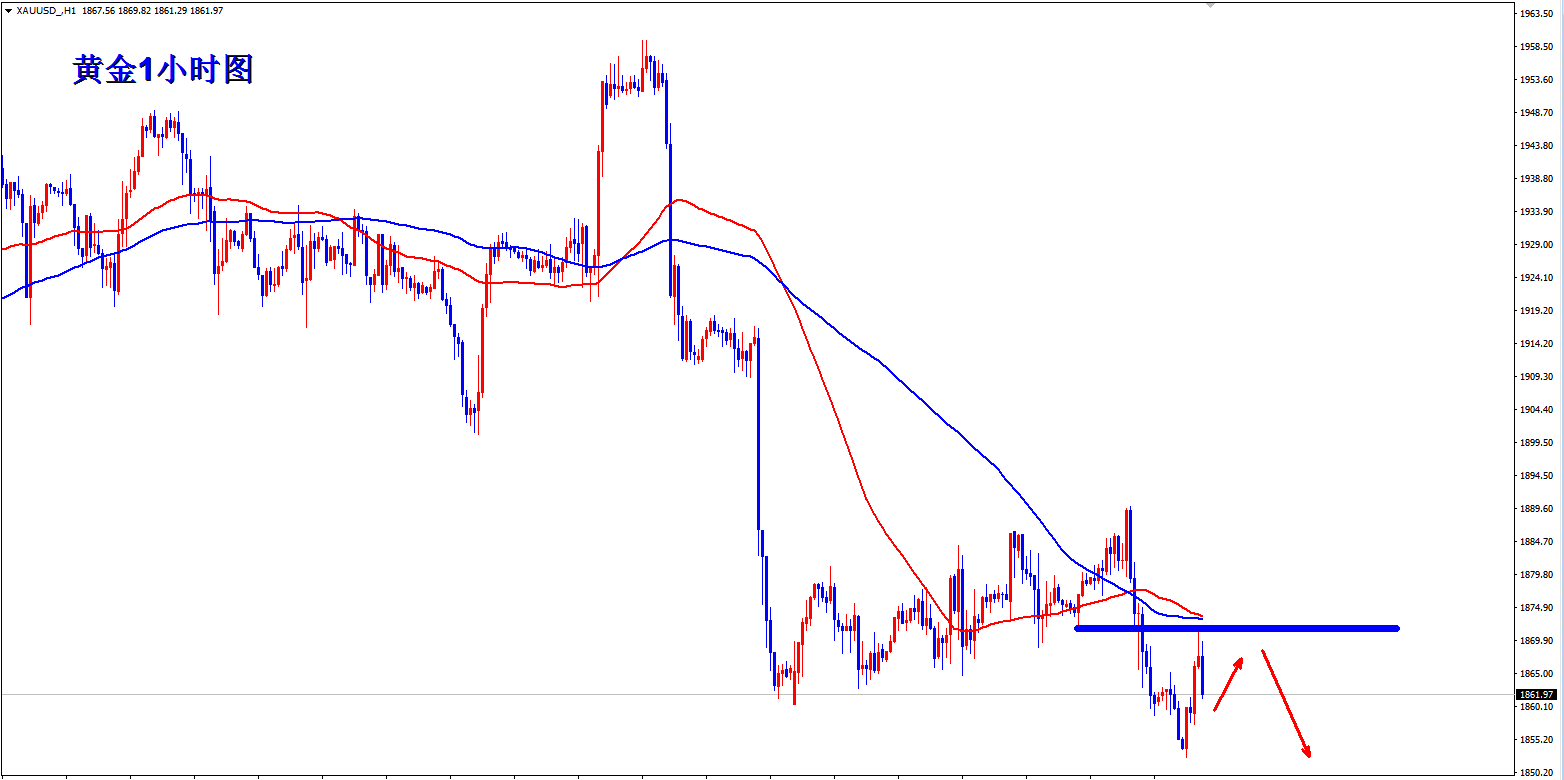 黄金趋势没有改变之前,任何反弹都是给干空的机会,黄金欧盘反弹1870直接干空,黄金再次下跌收割一波,将空头进行到底。