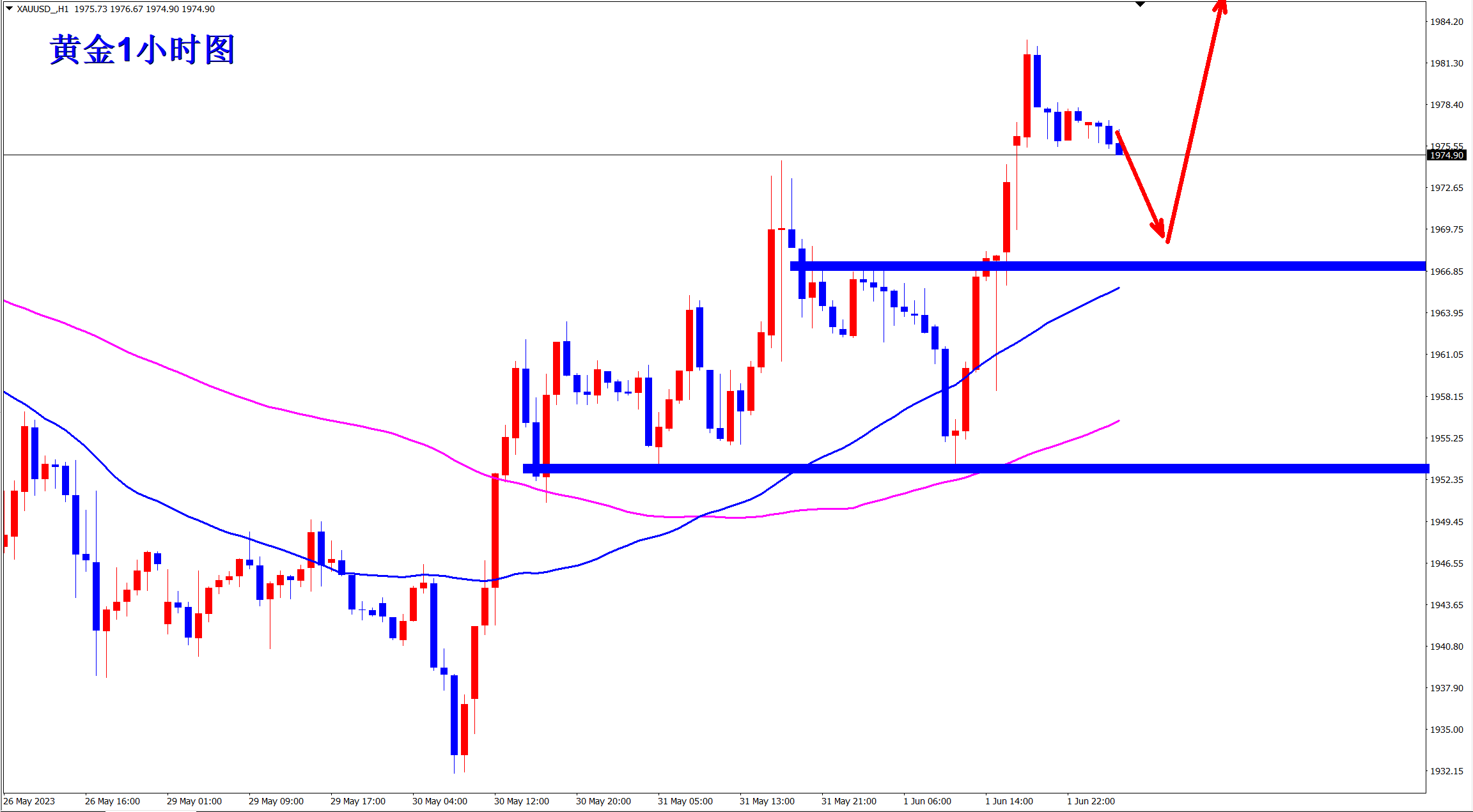 当前黄金已经开启上涨波段,我们做多已经四连胜,接下来还要继续多!当前1小时级别的关键支撑在1966位置,也就是均线支撑和昨日的密集成交区域!上方的压力依旧是1985,今天借助大非农数据一举拿下的概率很大!